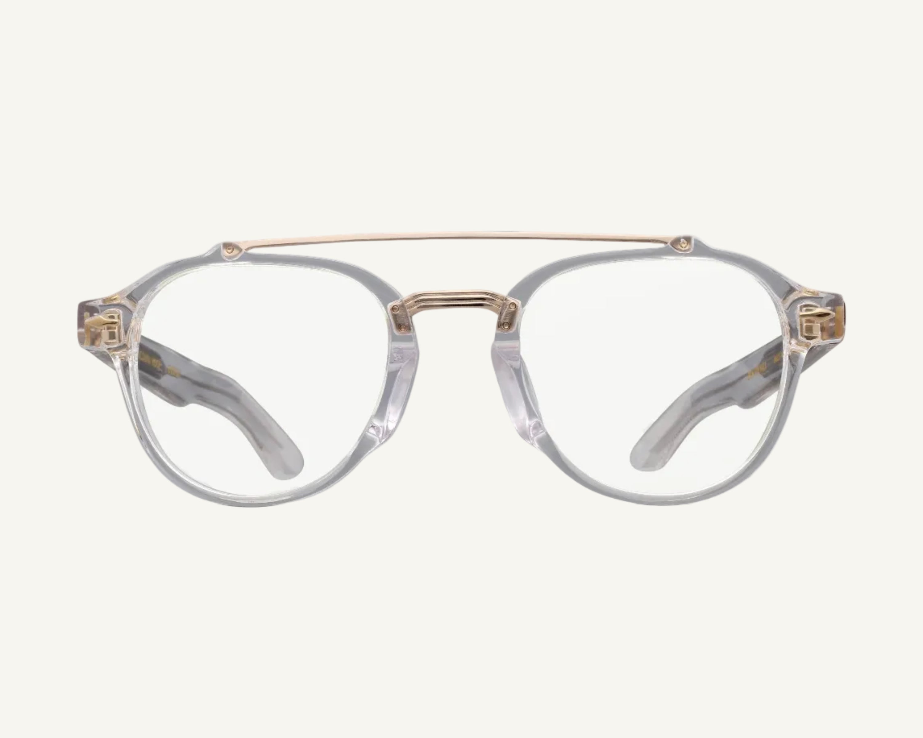 - Clear acetate with gold metal double bridge